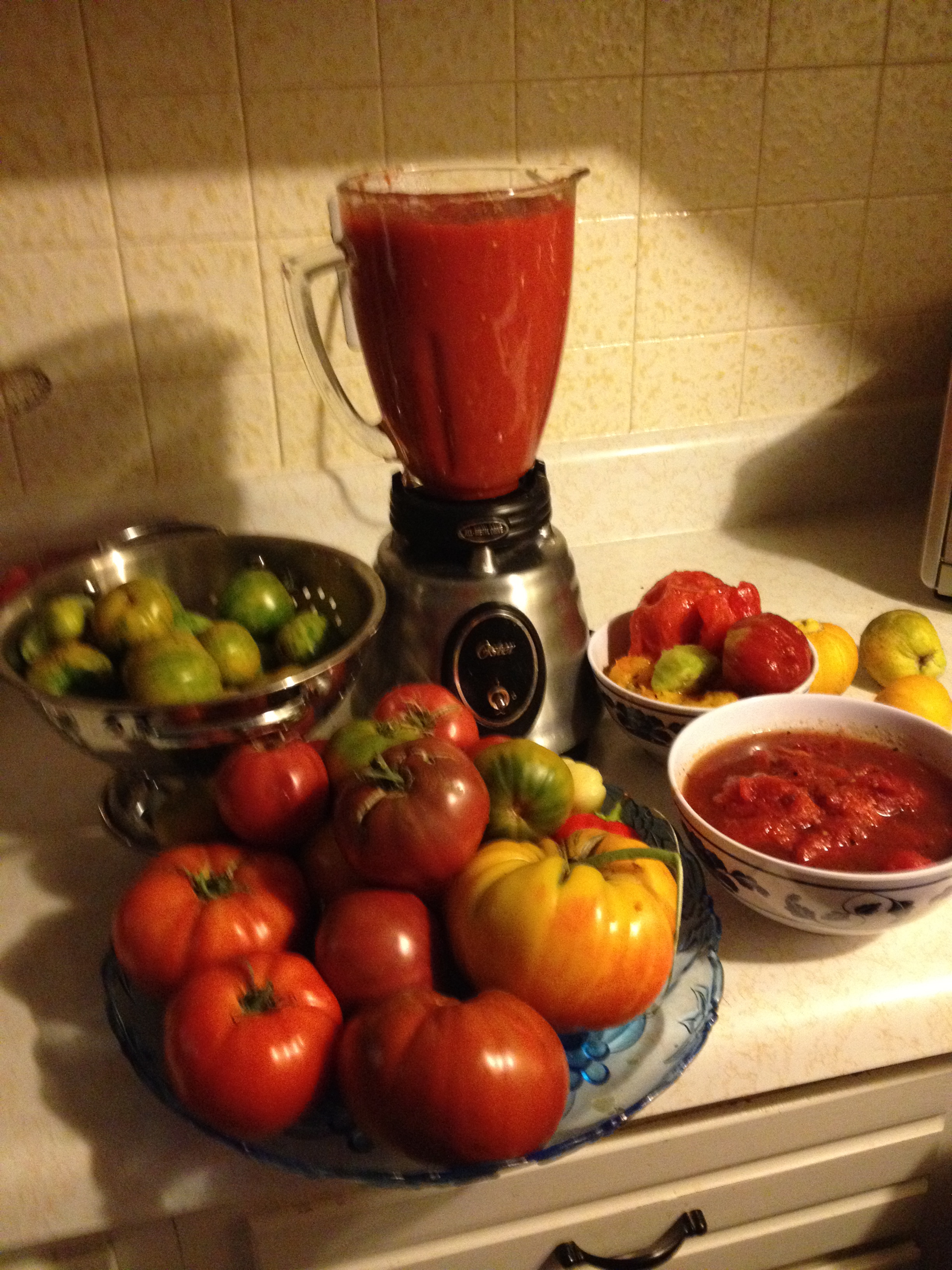2 cups peeled tomatoes (I grill large tomatoes at the end of the season, when I’m trying to keep up, and peel, chop, and throw them in sauces)