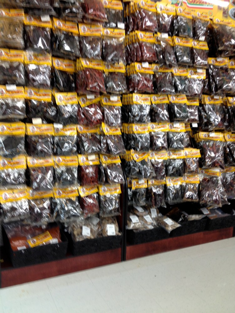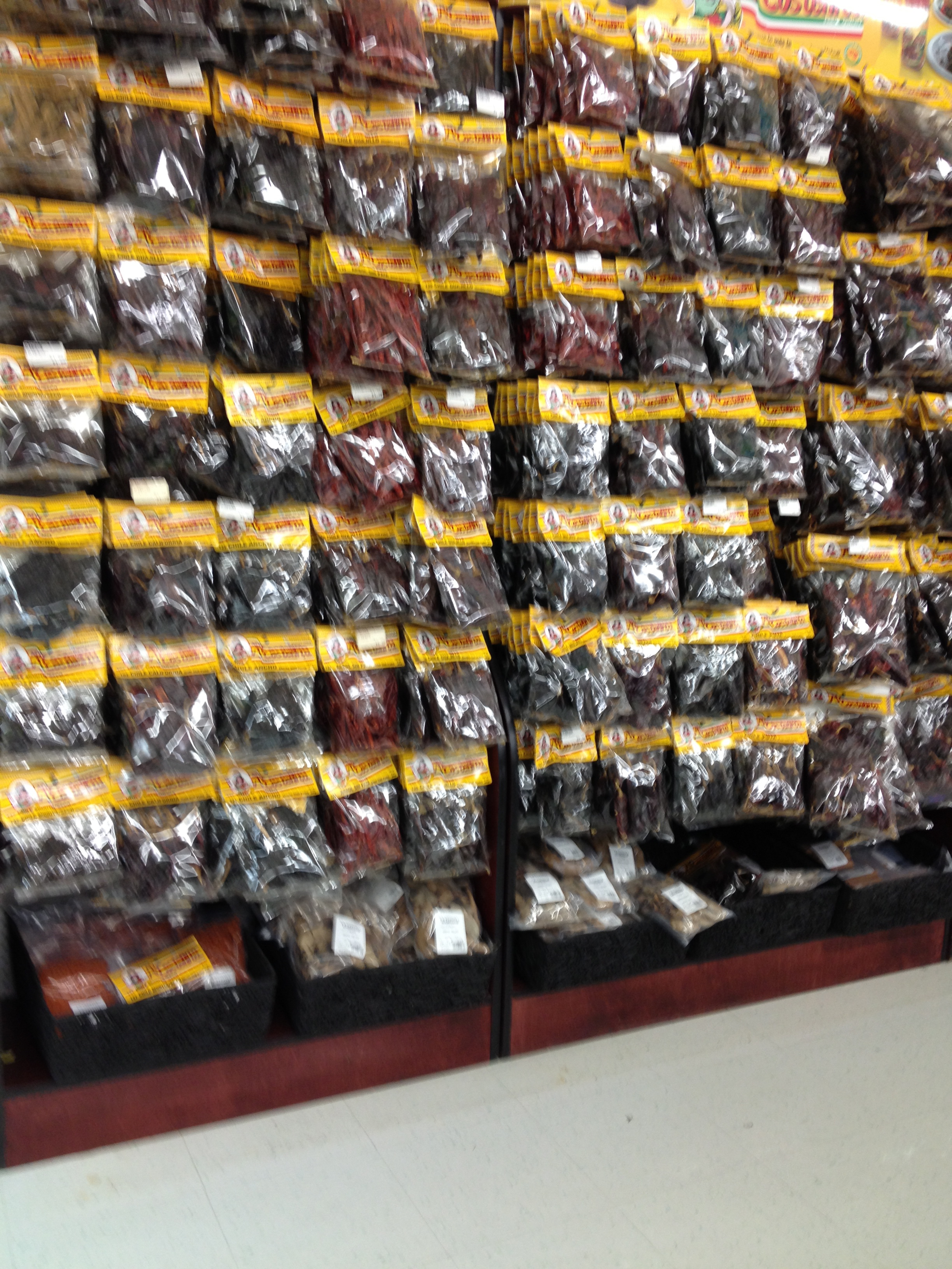 *For this recipe, you’ll need several varieties of dried peppers, which are available in any Mexican market in Iowa , where they are freshest and least expensive. In Des Moines I get them at La Tapatia, Vary the types according to level of heat, sweetness, smokiness, etc. For this recipe, I used hot Hatch New Mexican peppers, Guajillo, Pasilla, and dried chipotles, as well as dried green jalapenos.